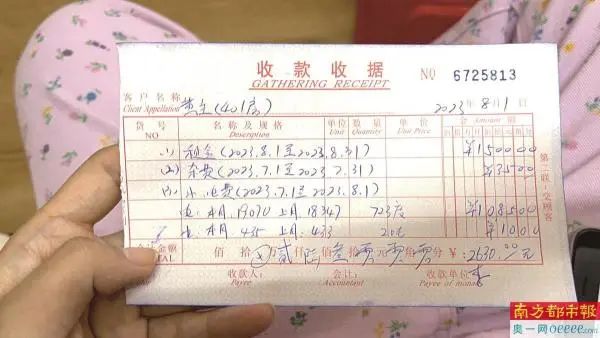 海女士房租水电缴费单据。