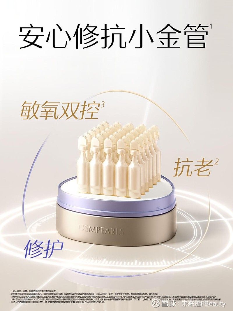 在专攻美白之外,欧诗漫开启了“围绕珍珠成分+精准分肤研发体系”的开创性研发思路。安心修抗小金管虽然聚焦于敏感肌抗老,其核心成分——珍敏优,仍然是围绕品牌57年专研的珍珠成分而得来。