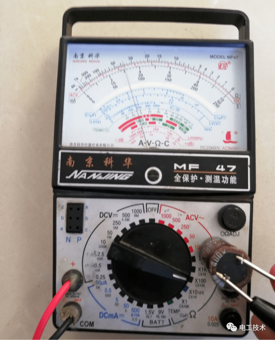 指针式万用表通过指针摆动能直观的显示电容的物理性能,并能确定电容的漏电阻大小与电容的好坏。