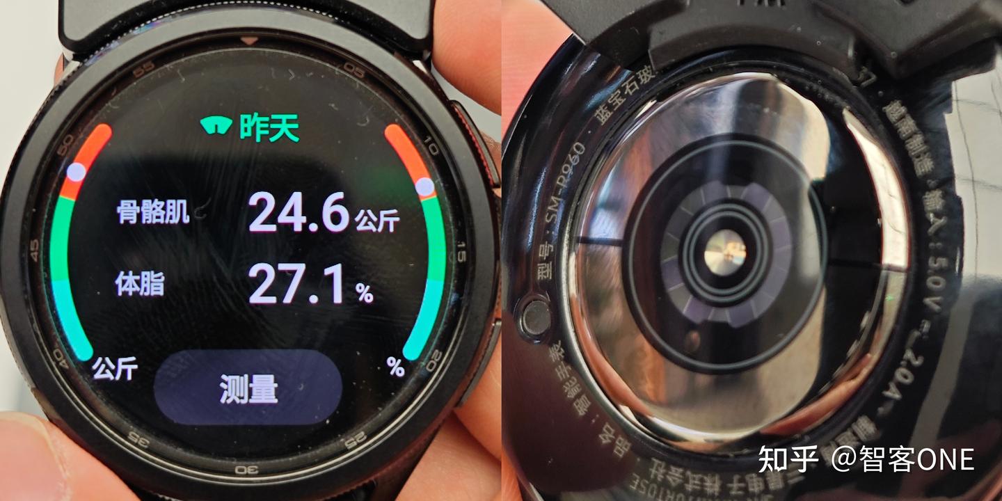 左侧为身体关键数据 右侧为多通道心率监测传感器三星智能手表是罕见的同时支持ECG(心电图)、血压测量、八项身体关键数据测量(BIA)、摔倒检测、专业睡眠监测、女性生理期的智能手表,在市面上智能手表来说这是独一家的存在。