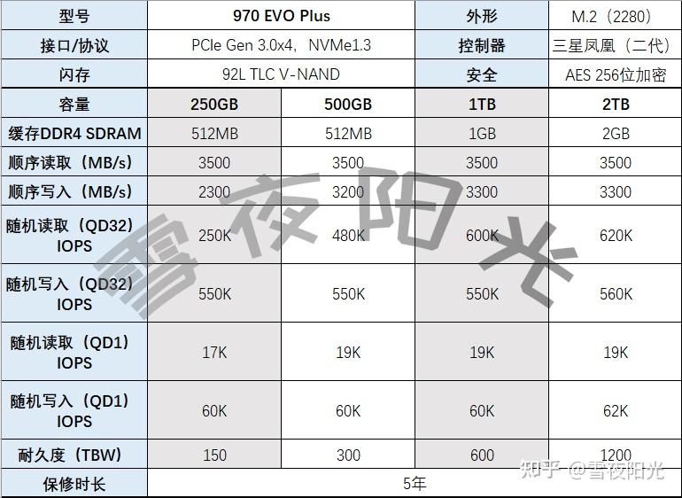 为了大家看着方便,下面970 EVO Plus的参数表是我自己在官网上扒的。