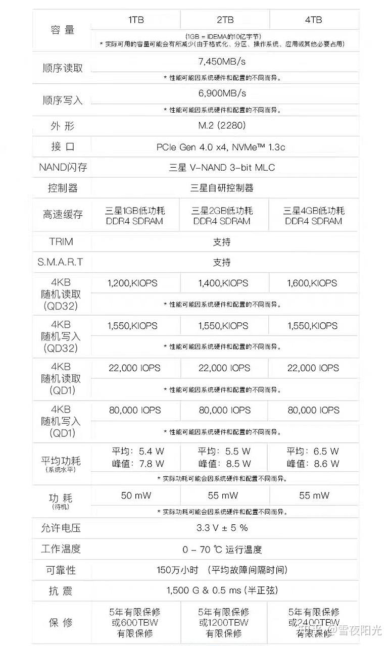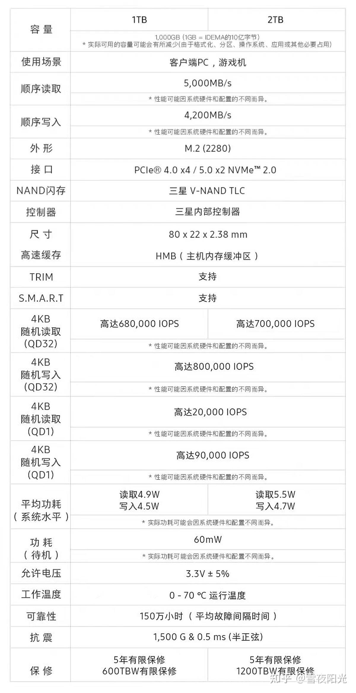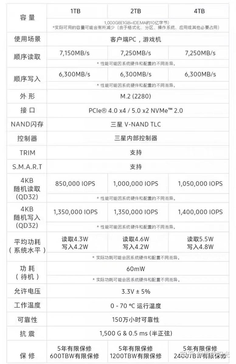 下图是我在官网上扒下来的980 PRO的性能参数。