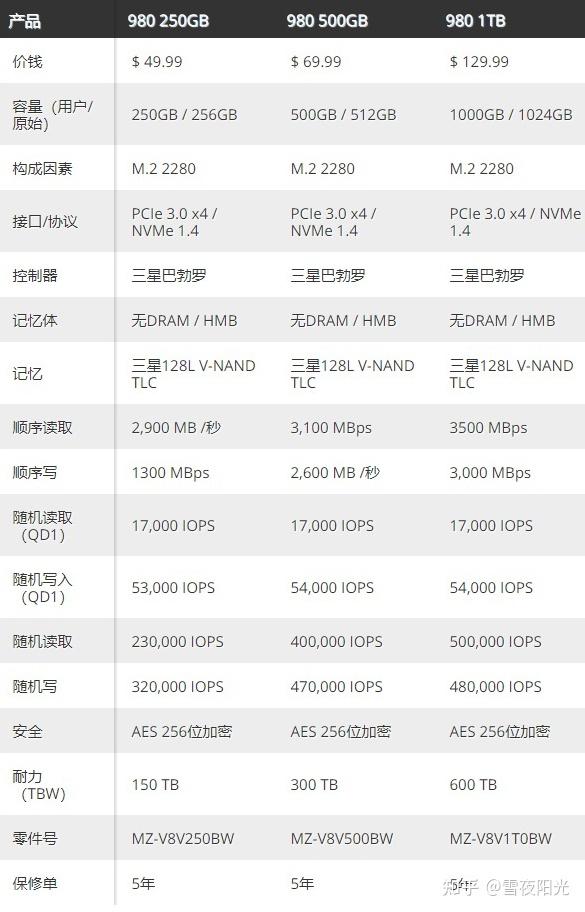 1、980980是三星价格最低的PCIe3.0*4 M.2固态硬盘。
