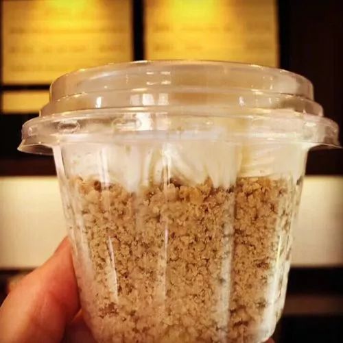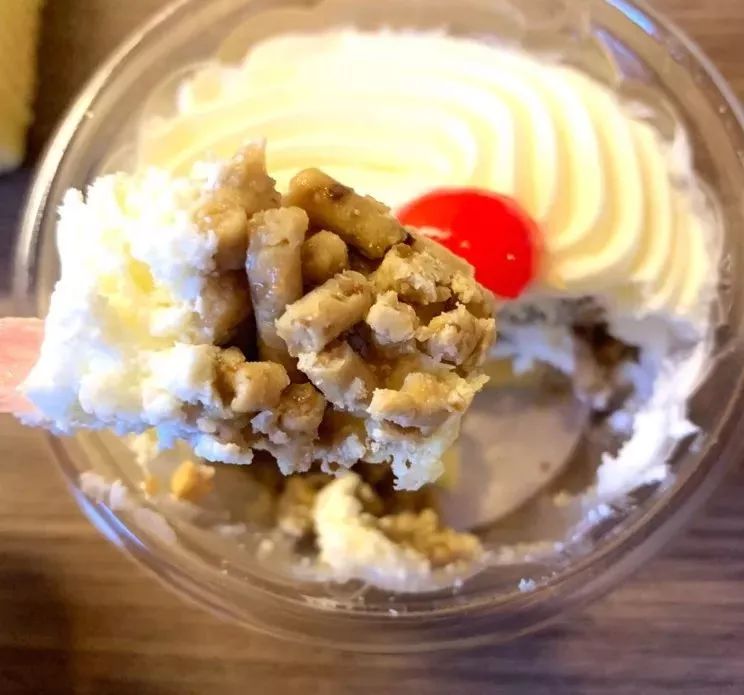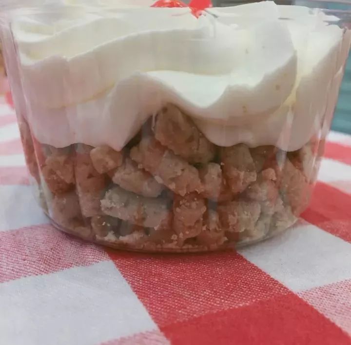 来自另一种俏皮的“白脱蛋糕”。一粒粒像猫粮似的蛋糕底层,上面盖了厚厚的奶油,很简单没什么颜值。