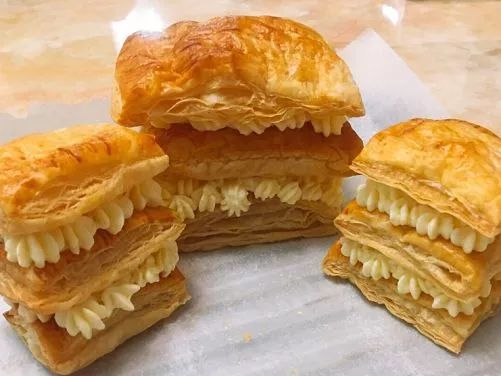 你眼前的拿破仑,跟法国将军拿破仑没有半毛钱关系,它是法文音译而来,意思是一百万层的酥皮,所以又被称为“千层酥”。
