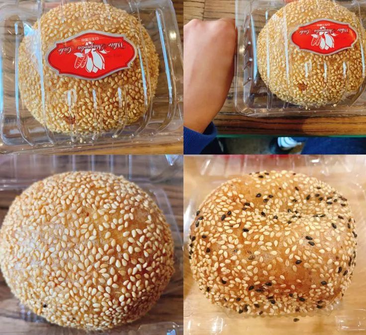 麻球大到一个盒子只能装一个,沉沉甸甸的很结实,外皮脆脆的,里馅糯糯的。口味有红豆和黑洋酥2种,轻轻咬一口就止不住往外冒油,黑洋酥可别贪嘴,吃多了会腻歪哦;撕开要是豆沙馅,清爽香甜。