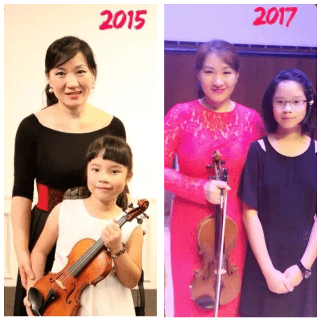 有一位从小跟随郭岚学习小提琴的女孩(下图左), 凭借着努力最终考入了英国的音乐学校。
