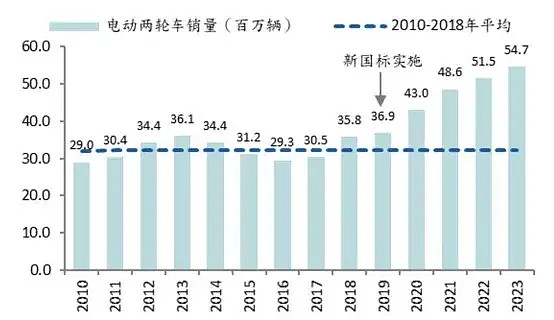 五、新国标阶段(2019年至今)——2019年《电动自行车安全技术规范》实施,促进行业规范化。换购潮推动产销量和市场规模大幅增长。《新国标》要求部分省份2022-2023年结束过渡期,江苏、山西、江西等省份将2024年设为过渡期截止时间。