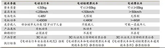 其中,电动自行车具备脚踏骑行能力,具有轻便、灵活、易操作的特点,要求时速低于25km/h;电动轻便摩托车和电动摩托车的分别在于设计车速是否大于50km/h,且电机连续额定功率总和是否大于4kW。