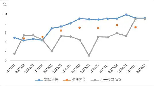 从行业龙头公司的情况看,以爱玛科技、九号公司为例,2024年三季报显示行业景气度从低谷有所修复。