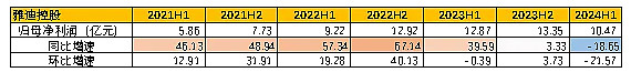 雅迪控股(江苏省,无锡市)——24H1实现营业收入144.14亿元,同比-15.4%;实现归母净利润10.34亿元,同比-12.95%。