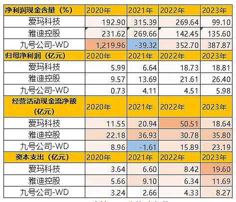 三家公司的现金流普遍较好,因为以经销模式为主,且对下游经销商的掌控能力较强。以爱玛科技为例,公司与经销商直接发生业务往来,经销商以买断的方式取得公司产品,因此现金质量较高。