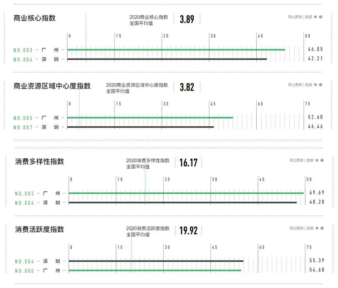 无论是商业资源实力,还是消费多样性、活跃度上,广州都多少领先于深圳。因此,在这份榜单上,一线城市还是按照北上广深的位次排序。2