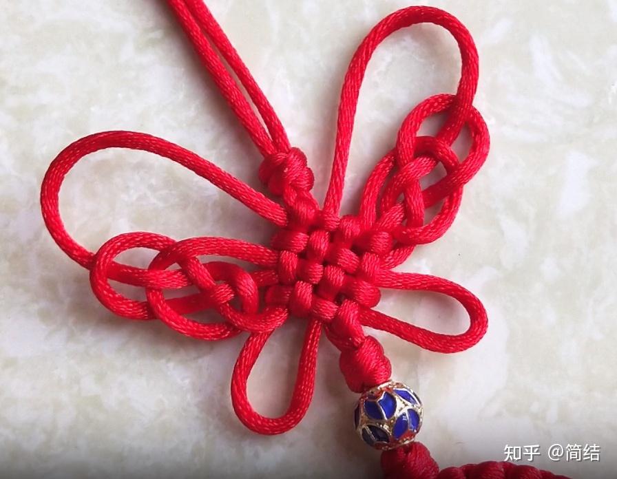 蝴蝶结:双钱结和二回盘长结的组合。(点击下划线文字可达视频教程)