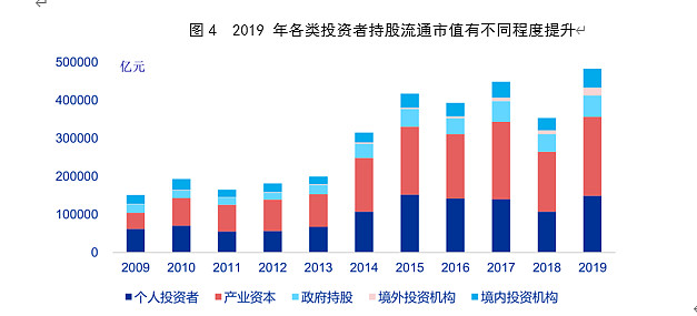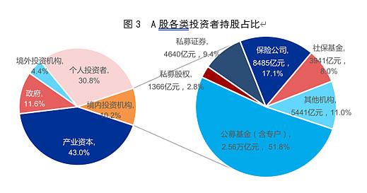 (2)从流通市值持股结构看,产业资本和政府持股占比下降,境内外投资机构持股占比均继续提升,个人投资者持股比例仅略微上升;