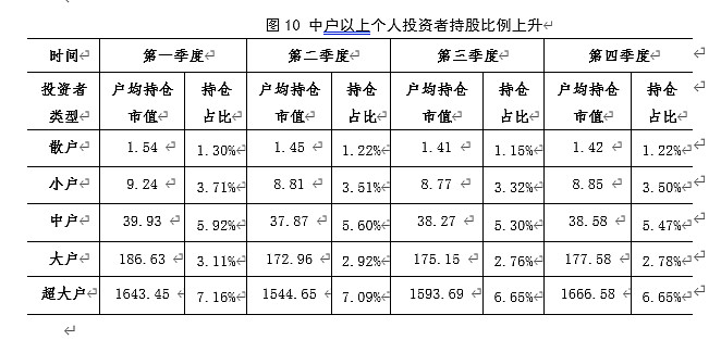 (2)中户以上个人投资者持股周期持平或略有下降;