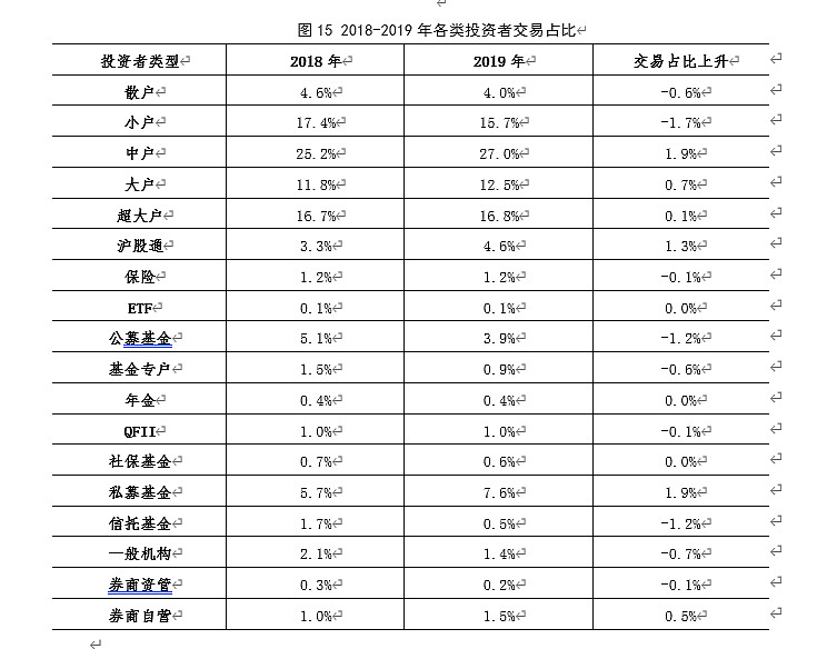投资者结构来看,2019 年我国A股投资者结构整体发生三大变化: