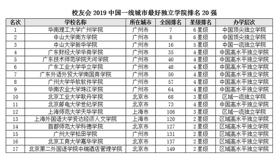 华南理工广州学院、武科大城市学院、云南师大商学院、吉大珠海学院等分列2019中国各线城市最好独立学院排名冠军