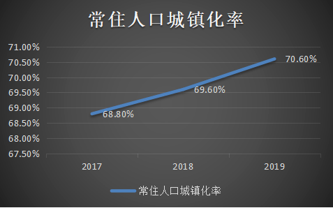 2017-2019年江苏省常住人口城镇化率不断提高,随着新型城镇化工作取得一定的成效,城市居住条件稳步改善、承载能力持续增强。