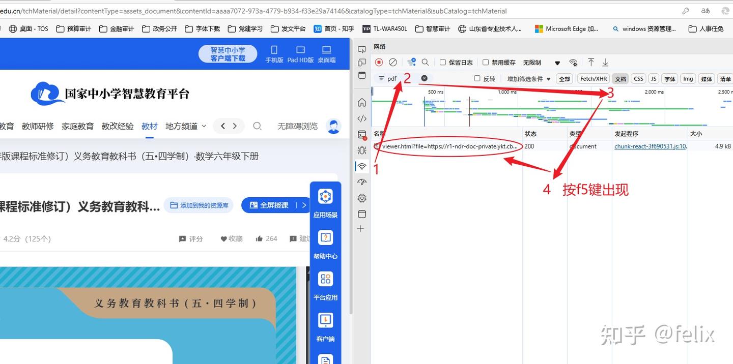 下载方法2:ctrl+s和显示下载按钮方法。在进入教材浏览的页面后,按f12,依次选择网络-输入过滤pdf,选择文档,按f5键,后出现椭圆中的链接