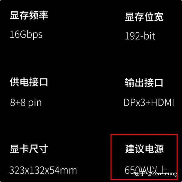 电源:想要了解自己的电脑选多大功率的电源比较合适,只需要参考显卡的建议功率就可以了。一般显卡详情页都会有介绍。
