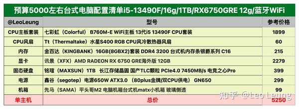 ➡️ 4:预算5000左右高性价比组装台式电脑配置清单推荐 ,高画质畅玩所有网游!