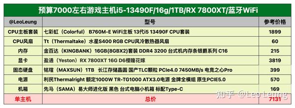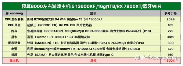 ➡️ 7:预算8000左右高性价比组装台式电脑配置清单推荐