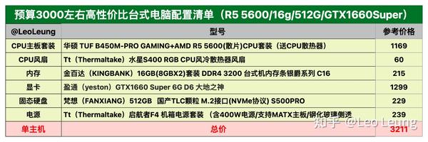 预算3000-1000组装机配置单(为提高效率,独立文章更方便阅读)