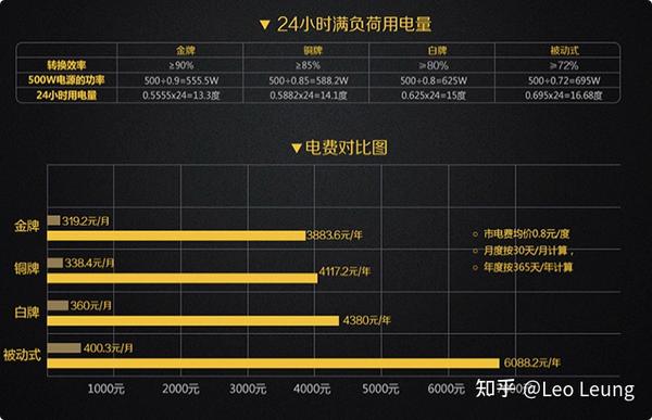选电源除了看品牌以外最重要的就是 80plus级别和质保时间。个人非常不建议选择没有80Plus认证的电源,很多线下实体店装机的都喜欢用没有认证的高瓦数电源。不但用料无保障,还费电。80plus认证的,白牌、铜牌、金牌的区别,简单理解就是转换效率的区别,实际表现也就是更省电。