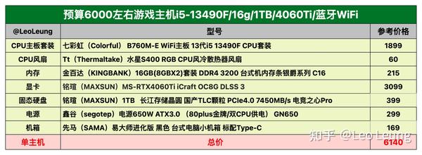 ➡️ 5:预算6000左右高性价比组装台式电脑配置清单推荐
