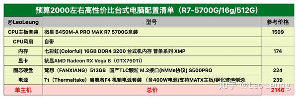 ➡️ 1:预算2000左右高性价比台式电脑配置清单推荐,居家办公影音娱乐游戏