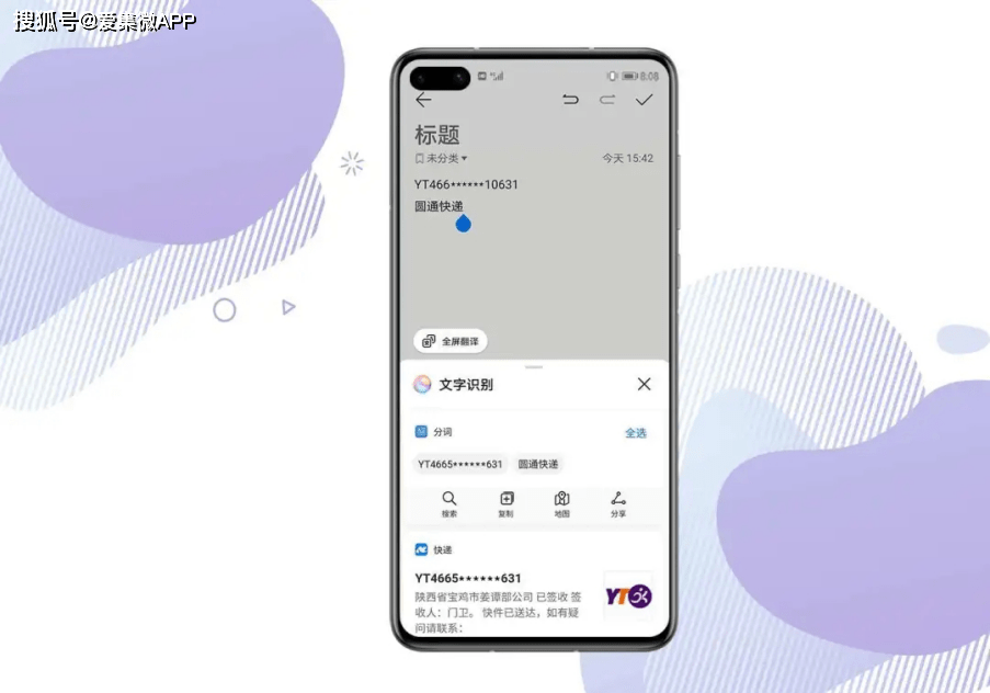 2. 备忘录识别快递信息:针对一些识别不了的快递,用户可以将“快递公司”和“快递单号”记在备忘录里面,保存后双指按压文字,以智慧识屏的方式订阅快递信息,这样也是可以生成快递卡片的。