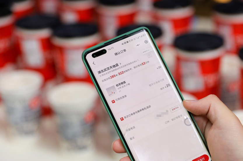 在开业当天,红餐网还发现不少通过美团、抖音等软件下单的顾客。“抖音下单后,我在附近逛了40分钟左右,手机就提醒可以取餐了。”一位从门店提着两杯“伯牙绝弦”的顾客说道。