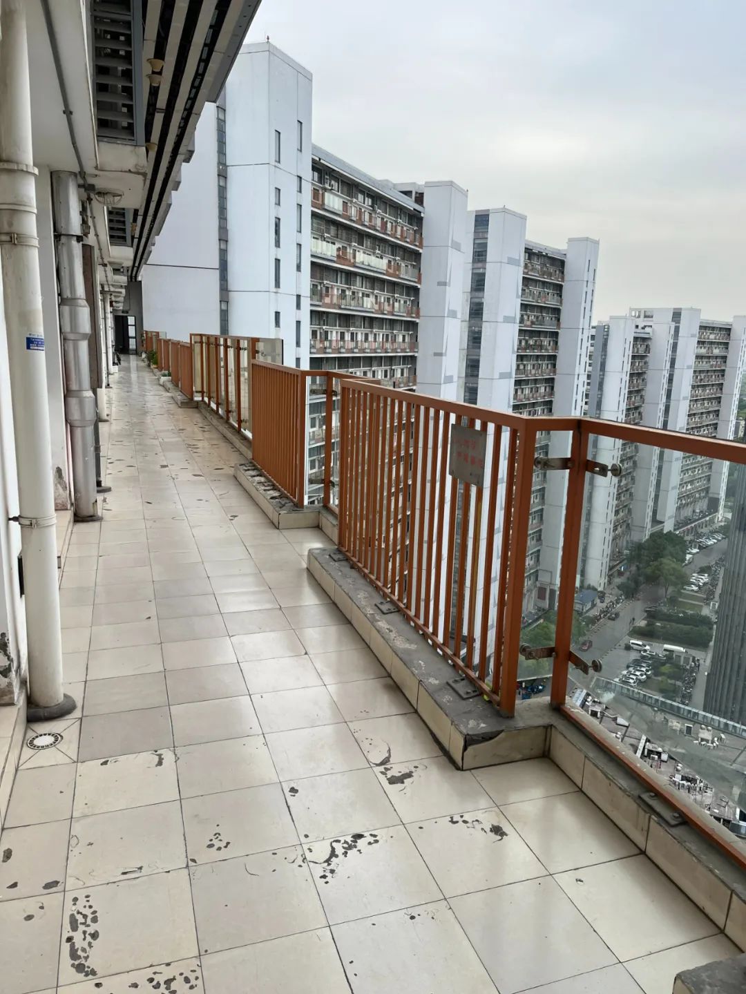 在我进入小区之后,最先注意的就是这条长长的走廊,低矮的栏杆总觉得不安全,包括地面瓷砖都已经破旧不堪。
