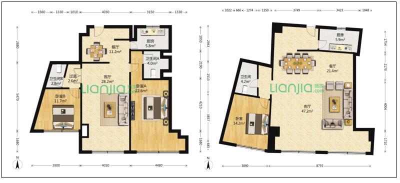 卫生间和厨房的面积甚至只有三四平,空间显得十分局促,如果是一对父母带着小孩居住确实不太住的下。