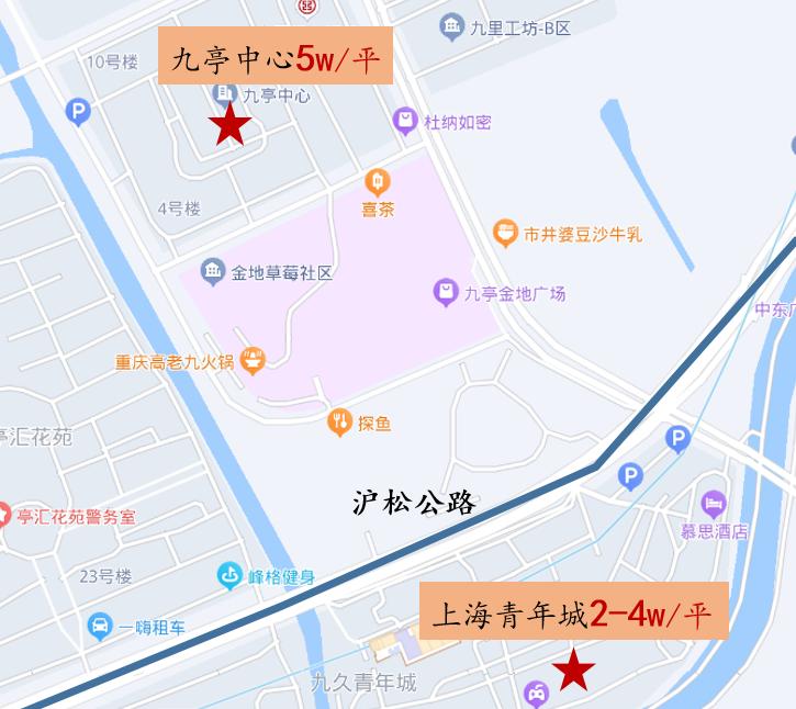 一边是上海青年城单价只要约2-4w/平,隔壁的九亭中心已经卖到5w/平。