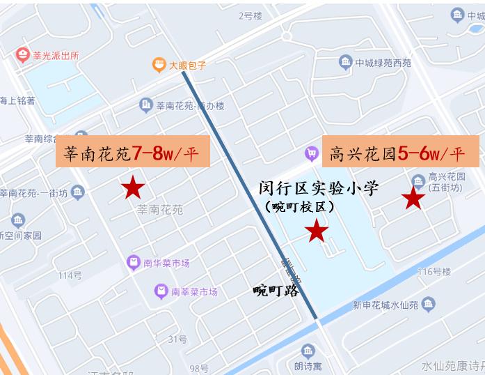 其实,还有很多类似于高兴花园和莘南花苑这样的小区,当学区都一样时,小区的居住属性差的小区房价也会变得更便宜。