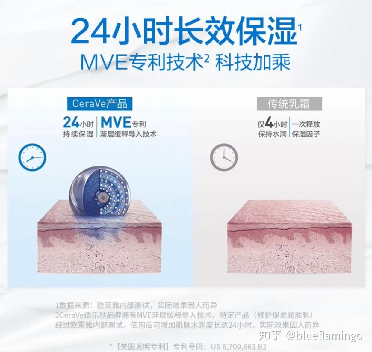 这个技术的特点之一还在于与传统上采用的护肤成分一次性释放的方法不同,MVE Technology技术能让涂在皮肤上的护肤品逐层、舒缓释放神经酰胺等保湿修护因子,有助延长有效护肤成分渗入皮肤后的释放时间,并持续滋润肌肤,即所谓的“长效修护”,避免一次性释放导致营养成分富余、流失、失活等问题,这也是Cera Ve适乐肤区别于其他敏感肌修护品牌的功效释放方式。