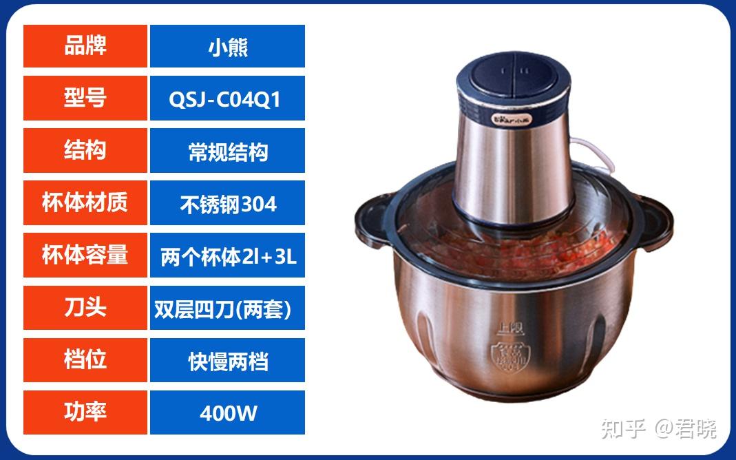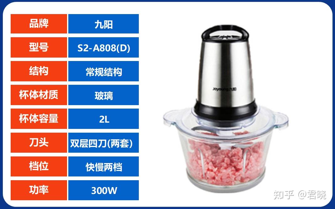 和前面那款九阳的一样,2L容量,两套刀头,300W的功率。特色是刀头采用了短轴设计,不塞肉,易清洗是小熊卖的最好的一款,销量超百万适用场景:2L的容量正好适量,适合普通三口之家使用推荐2、苏泊尔JR61 参考价格 ¥179