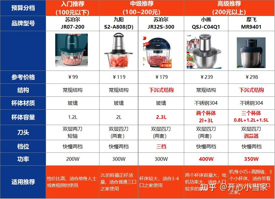 汉佳欧斯,德国品牌,即便选其入门级机型也能信任其质量,更有性价比。可惜京东已经全面下架,其实性价比很高!九阳和苏泊尔,是国内厨房小家电的佼佼者,两者都是做豆浆机起家,工艺和技术与绞肉机类似,其机型款式都是主流品种,主攻中端产品。小熊和摩飞是近年来迅速走红的后起之秀,创新性更强,颜值外观设计优秀,在中高端产品上很有竞争力。颜狗必选!各家都有好几种机型,看起来眼花缭乱,无所适从。