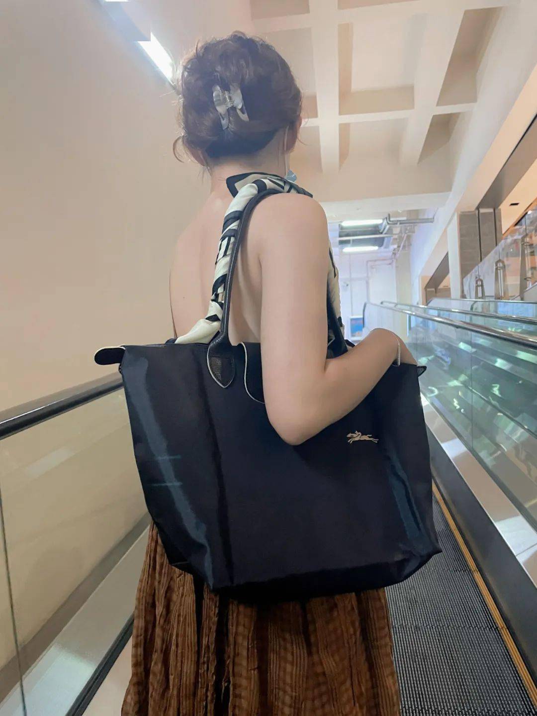 我去成都旅行的时候,看到一个身材高挑的美女,左肩背着一只精致的mini香奈儿,右肩拎着一只大号珑骧。两只包各司其职,分工清清楚楚。