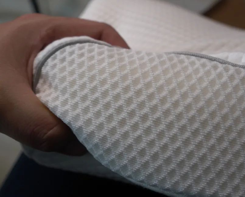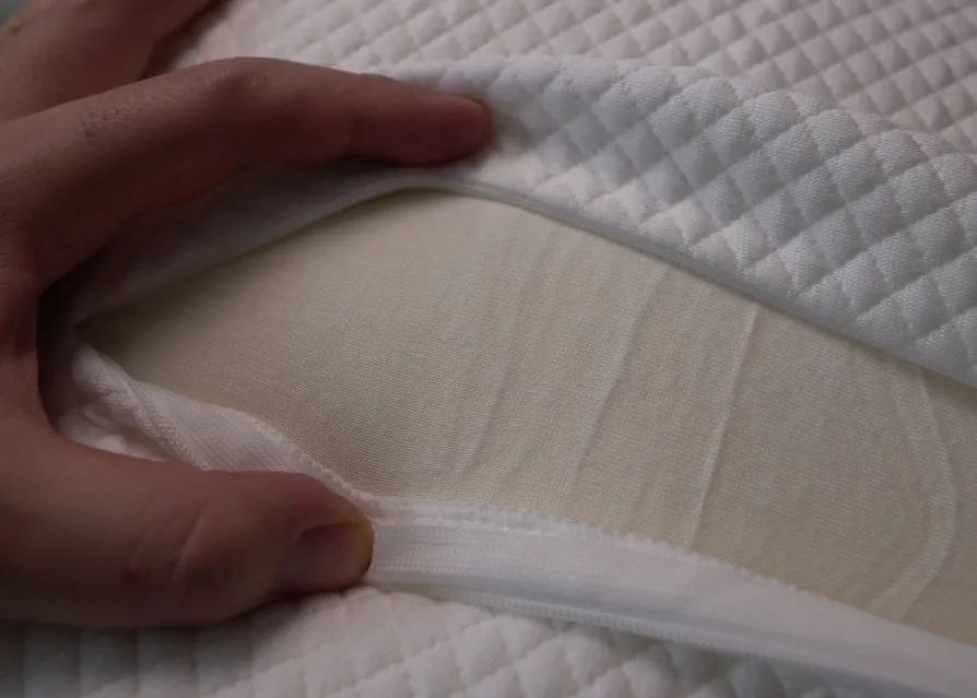 这层内衬的弹性很大,几乎与里面的有机棉枕芯完全贴合。
