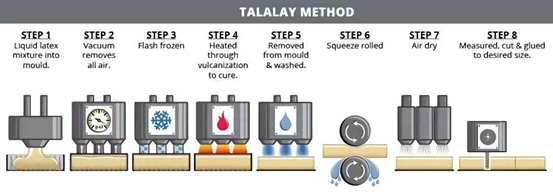 主流是邓禄普发泡,工艺简单、产量高,算是性价比比较高的主流工艺。