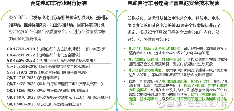 2023年7月国家标准委发布两项国家强制标准,是继2018年的《新国标》后又一次强制措施,涉及电动自行车充电器安全、电动自行车电气安全。