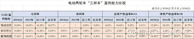 最后看下净利润增长率指标,也是雅迪和爱玛出现快速增长,规模和盈利能力明显,行业持续分化,新日股份等第二梯队企业加速掉队。
