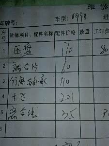 ,当时没有那么多RMB所以就不理他。有一天路过汽配店就买一套离合器想叫修理厂换也要两百人工钱。还要等两天才可以提车,想到自己这两天也放假了有空还是自己换好了。