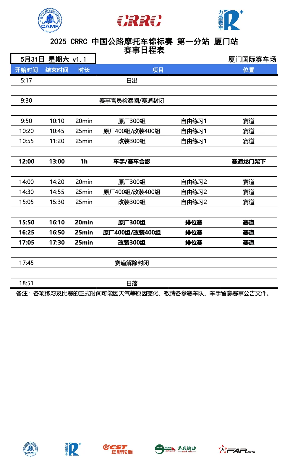 来源:厦门体育、CRRC中国公路摩托车锦标赛