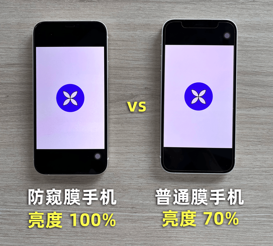 需要正常70%亮度时,防窥膜手机得提到100%才能达到。