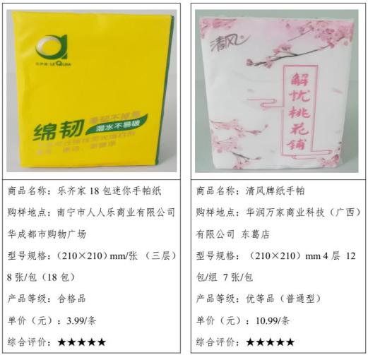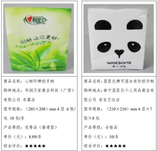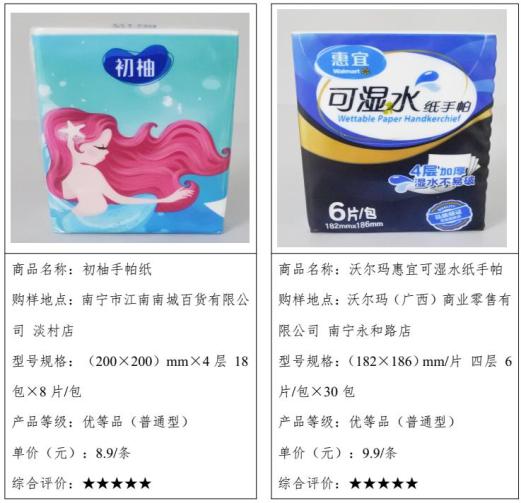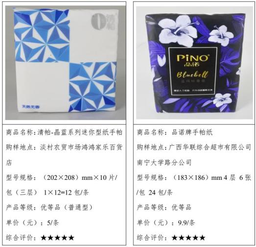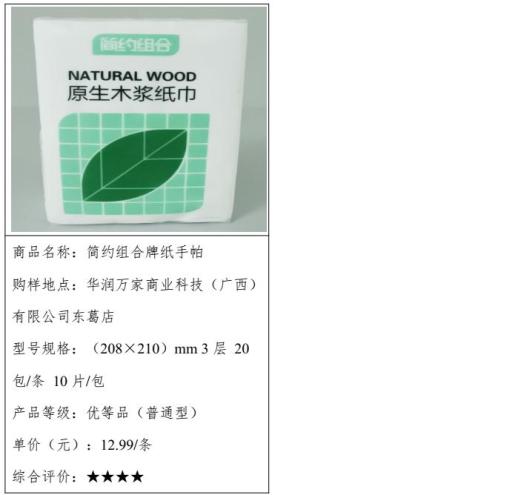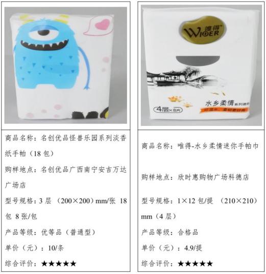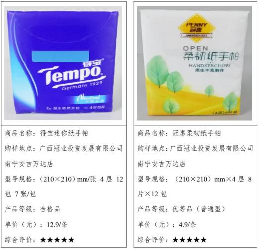 在15款手帕纸样品中,12款样品表现优秀,获五星;3款样品表现较好,获四星。