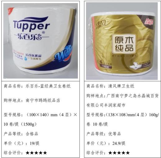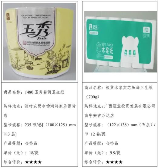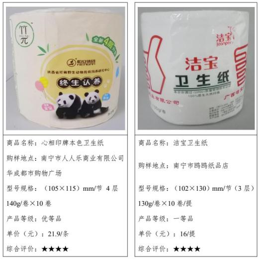 在14款卫生纸样品中,4款样品表现优秀,获五星;8款样品表现较好,获四星;2款样品柔软度检测结果不符合国家标准,不予评星。
